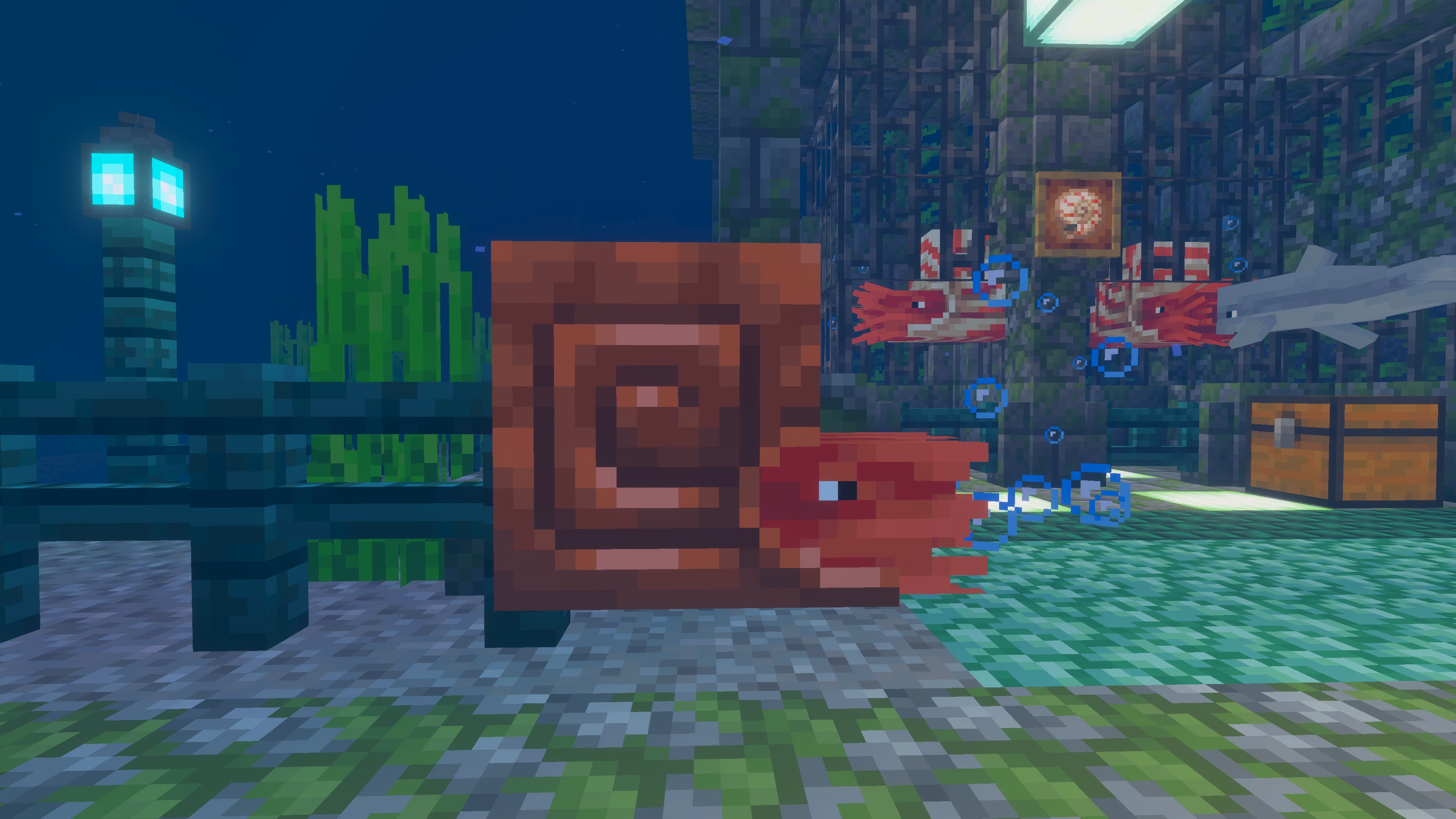Mojang добавляет нового подводного моба — Nautilus (Наутилус). Этого головоногого можно приручить с помощью рыбы-пузыря, оседлать (и даже экипировать новой броней, которую можно найти в сундуках с сокровищами) и стильно рассекать океанские глубины.