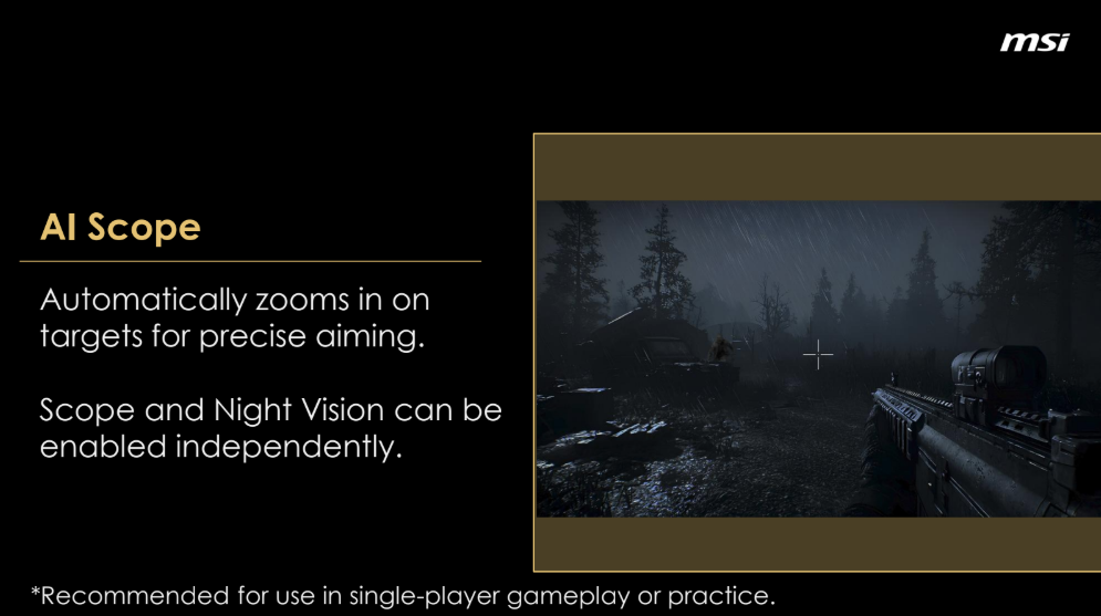 MSI уверяет, что эта ИИ-технология работает с ЛЮБОЙ игрой, ничего настраивать или тренировать не нужно. Просто включил и пользуешься.