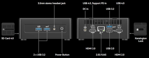 Как и в случае с оригинальным IT13, к IT15 можно подключить до четырех дисплеев, используя два полноразмерных порта HDMI и два порта USB4 (один из которых поддерживает Power Delivery для питания внешнего портативного монитора). В плане подключения изменений по сравнению с предыдущим поколением нет: один порт USB 2.0, порт 3.2 Gen 2 и цилиндрический разъем питания на задней панели. На передней панели все осталось прежним: два порта USB 3.2 Gen 2 и 3,5-мм разъем для наушников.