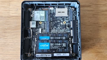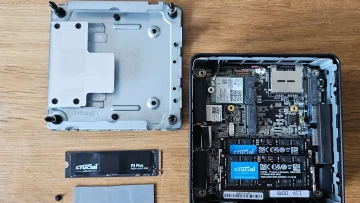 Первое, что бросается в глаза – отсутствие возможности установки 2,5-дюймового SSD. Крепежная рама для такого диска осталась, но разъем отсутствует. Этот вопрос был задан представителю GEEKOM, так как это относительно недорогой способ увеличить объем дискового пространства.