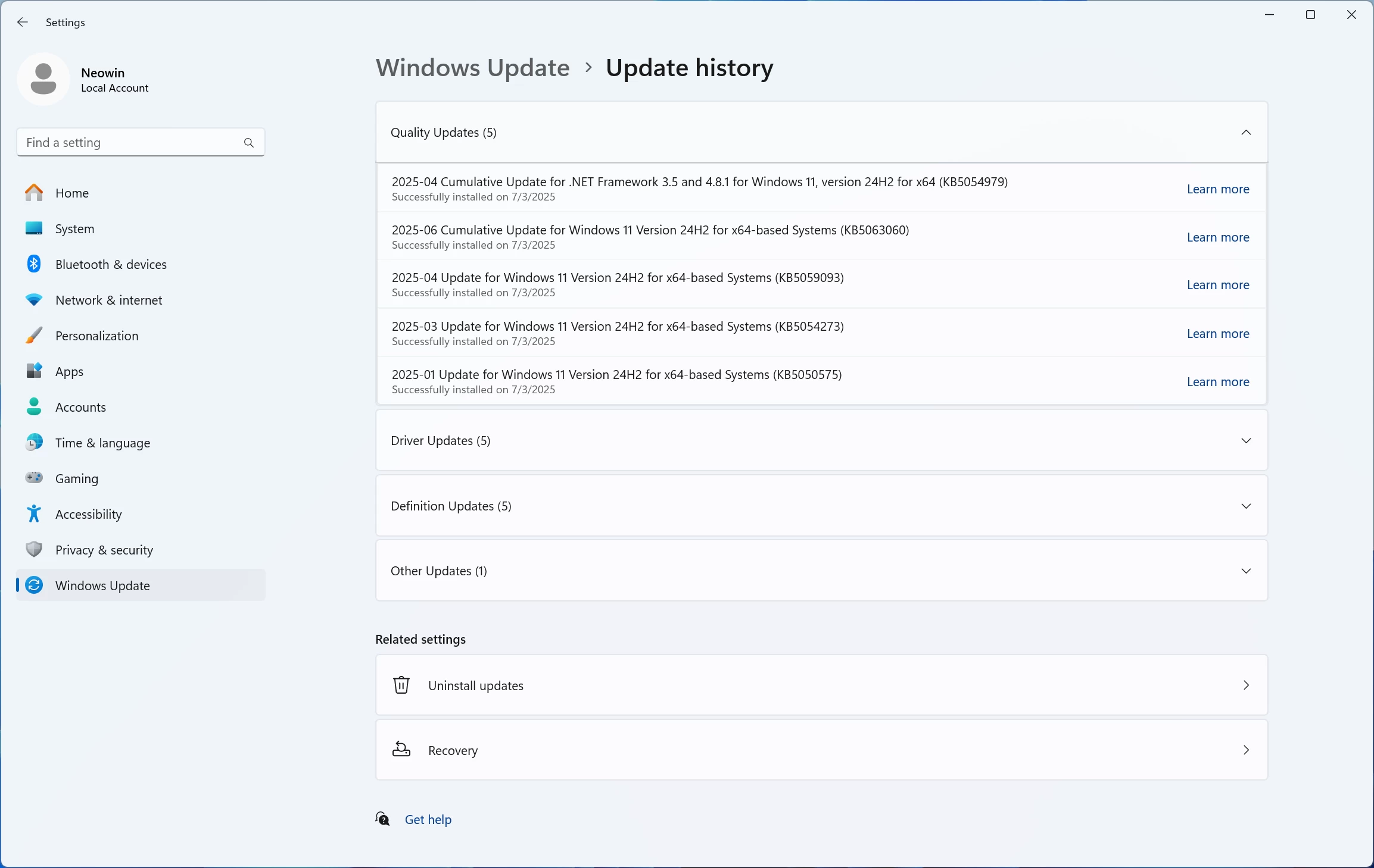 При первой загрузке предлагается завершить настройку Windows 11 Pro, что означает отсутствие необходимости платить за лицензию. После завершения настройки было обнаружено, что система не содержит предустановленного bloatware (ненужного программного обеспечения) (). OOBE (Out-Of-Box Experience – первое включение и настройка) также устанавливает несколько обновлений для Windows 11 24H2, поэтому процесс обновления был относительно быстрым.