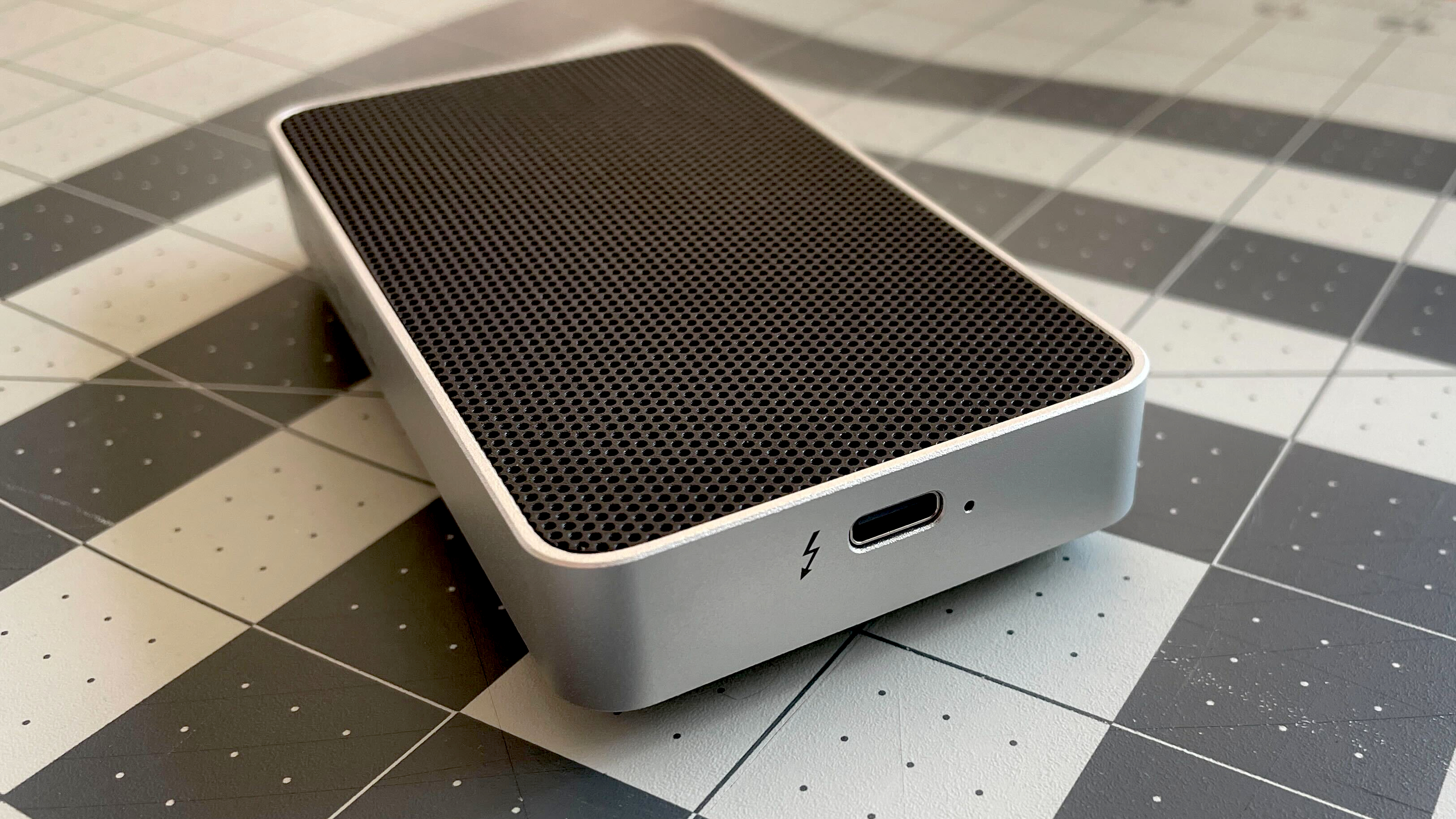 Orico X50 — это внешний корпус для M.2 SSD с поддержкой Thunderbolt 5. Звучит круто, правда? 🔥 Корпус сделан из алюминия, выглядит солидно и ощущается прочным, несмотря на то, что он довольно компактный. Закрывается он снизу на винтик, что хорошо — ничего случайно не откроется, если уроните. А еще у него такая сетчатая верхняя панель, которая помогает охлаждать SSD без всяких шумных вентиляторов. Я сам гонял его с интенсивной записью больше часа, и он справился отлично – грелся, но не до критических температур.