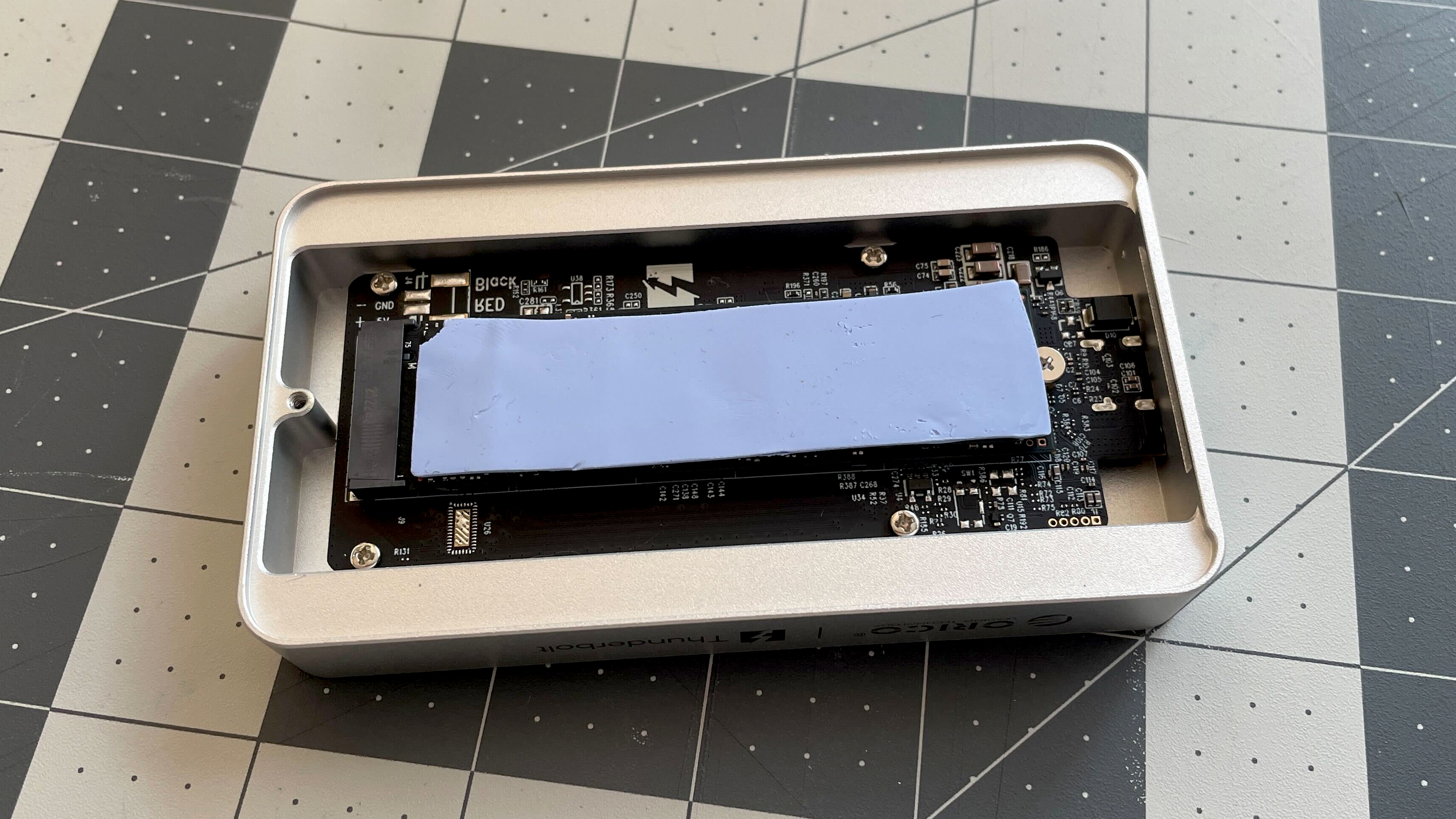 Есть пара моментов, которые могли бы быть лучше. Во-первых, снять нижнюю крышку после установки SSD и термопрокладки оказалось непросто. Она как будто приклеивается, и пришлось немного повозиться, даже поцарапал корпус. 😬 Во-вторых, корпус поддерживает только M.2 2280 SSD, так что если у вас есть диски другого размера, они не подойдут.